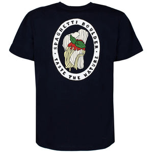 Con Spaghetti Boulder, in cui si legge un omaggio sia all’Italia sia all’outdoor, si crea un parallelismo moderno e concettuale con “Spaghetti Western”, espressione nata negli Stati Uniti d’America, che indica i lungometraggi girati in italiano, oggi veri e propri cult, associato al boulder contemporaneo.