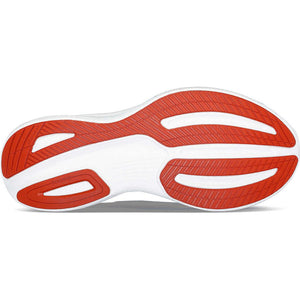 L'intersuola incorpora la schiuma PWRRUN+ di Saucony, che mantiene le gambe reattive indipendentemente dalla distanza, ottimizzando ulteriormente la sensazione di comfort e la spinta propulsiva. Inoltre, la forma dell'intersuola avvolge il piede all'interno della scarpa, anziché posizionarsi direttamente sul tessuto in rete, in modo da migliorare la stabilità.