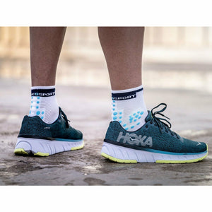 Compressport Pro Racing Socks V3 Run HIGH White Blue - Calza Running