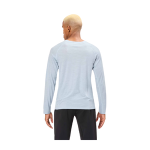 Maglia manica lunga azzurro polvere, regular fit, multisport e talmente comoda da essere ideale come strato di base durante le escursioni o le attività alpine, o per andare a correre nelle giornate più fredde.