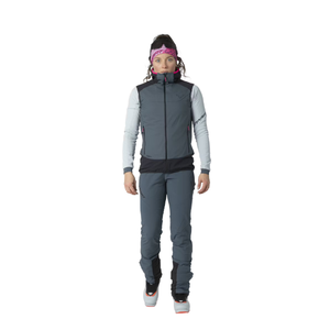 Sulla schiena, nel punto in cui poggia lo zaino, lo strato isolante è assente e al suo posto è stato scelto un inserto elastico con perforazioni che fanno circolare maggiormente l'aria. Il gilet ha una vestibilità aderente e inserti elasticizzati che assicurano una tenuta perfetta senza scivolare, anche quando si compiono movimenti intensi.